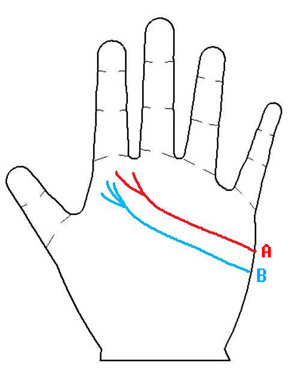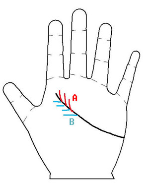感情线在食指下分二叉的对象(A),对人的爱情和同情心都相当深厚,品格端正,热诚忠厚,是标准的好丈夫好妻子,以身作则下,多能教育出品行良好的孩子。如果你的和交往对象都是这种感情线,双方都个性体贴,也能彼此理解,可沐浴在婚姻的幸福中。